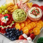 Garnishes are what elevate this already beautiful board into a showstopper. Fresh green grapes interspersed throughout bring a natural burst of color and juicy sweetness while enhancing the holiday palette. Red and green sprinkles sprinkled lightly over marshmallows or yogurt add sparkle and whimsy, ensuring each bite is as festive as it is delicious.