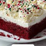 This Christmas Red Velvet Poke Cake is a festive and indulgent dessert featuring a moist red velvet cake infused with sweetened condensed milk and rich hot fudge sauce. Topped with fluffy whipped topping, white chocolate chips, and colorful sprinkles, this poke cake is perfect for holiday celebrations and easy to prepare using a boxed cake mix.