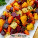 This festive Christmas Roasted Root Vegetables recipe features a colorful medley of butternut squash, beets, and rainbow carrots, tossed in melted ghee and perfectly seasoned with kosher salt, then roasted to tender, caramelized perfection. It makes an excellent side dish for holiday meals, bringing warmth, sweetness, and vibrant colors to your table.