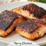 This Christmas Seared Salmon with Lemon Dill Sauce recipe features perfectly pan-seared salmon filets topped with a creamy, tangy lemon dill sauce made from Greek yogurt, fresh dill, and lemon juice. The salmon is seasoned simply and cooked in a cast iron pan to achieve a crispy exterior while maintaining a tender, flaky interior. Ideal for a festive holiday dinner, this dish combines bright citrus flavors with herbaceous dill for a fresh, vibrant finish.