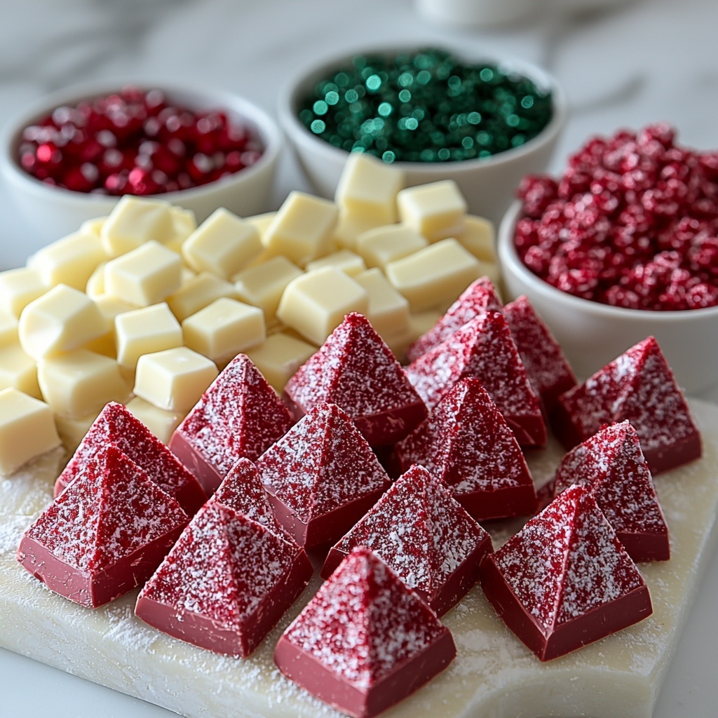 - Decorate: Drizzle red food coloring over each truffle and immediately sprinkle with green sanding sugar to create a festive look. Allow the chocolate to set before serving.