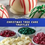 These festive Christmas Tree Cake Truffles are a deliciously easy holiday treat made from Little Debbie vanilla Christmas tree cakes, cream cheese, and coated in white chocolate. Decorated with red and green accents, they make perfect bite-sized desserts for holiday parties or gift-giving.