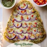 Christmas Tree Pizza with Pesto, Red Peppers, and Onions Recipe