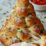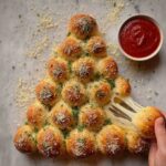 This Christmas Tree Pull Apart Bread is a festive and delicious appetizer perfect for holiday gatherings. Soft pizza dough is filled with gooey mozzarella cheese, seasoned with Italian herbs and garlic, then baked into a charming tree shape. Brushed with buttery garlic parsley topping and served with marinara sauce, it’s an irresistible treat for sharing.