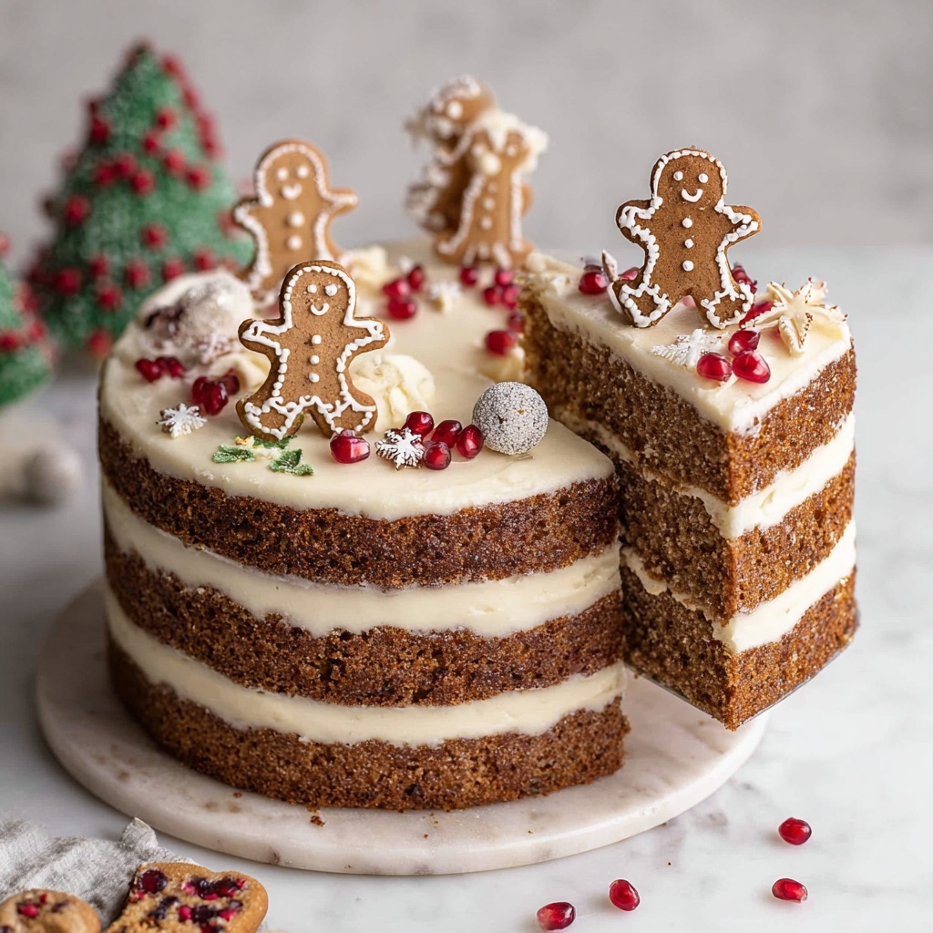 This cake shines when topped with a few thoughtfully chosen garnishes. Sugared rosemary and cherries make for a fresh, festive touch that contrasts beautifully with the rich spiced cake. Gingerbread cookie crumbs or small cookie shapes add crunch and echo the flavors inside the cake. These simple additions elevate the presentation and taste simultaneously.