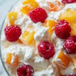 In a large mixing bowl, combine the drained mandarin oranges and pineapple chunks with the miniature marshmallows, shredded coconut, and chopped maraschino cherries if you’re using them. This colorful blend of ingredients creates the foundation of your salad, promising bursts of fruitiness and chewy sweetness in every bite.