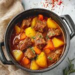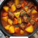 This Classic Beef Stew recipe features tender chunks of beef chuck simmered slowly with aromatic vegetables, red wine, and savory herbs to create a rich, comforting dish perfect for cozy dinners. The beef is first coated in a seasoned flour mixture and seared to develop a flavorful crust before being braised for hours until fork-tender. Potatoes and carrots are added toward the end to absorb the hearty flavors, resulting in a deliciously thick, wholesome stew that’s ideal for meal prep and family gatherings.