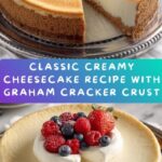 Classic Creamy Cheesecake with a buttery graham cracker crust and rich, smooth cream cheese filling baked in a water bath for perfect texture. This timeless dessert is ideal for special occasions and can be topped with fresh berries, whipped cream, or chocolate sauce to suit your taste.