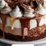 This Coffee and Fudge Ice Cream Cake is a decadent frozen dessert featuring layers of creamy coffee ice cream, rich chocolate fudge, and a crunchy cookie crust. It’s the perfect no-bake treat for coffee lovers and a crowd-pleasing option for birthdays or hot summer days.