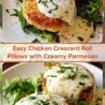 These Comforting Chicken Pillows with Creamy Parmesan Sauce are a delightful, savory treat featuring shredded chicken and cream cheese wrapped in buttery crescent dough, baked to golden perfection, and paired with a rich, creamy Parmesan sauce. Perfect for an easy family dinner or a cozy gathering, this recipe brings together crispy, cheesy, and creamy textures in every bite.