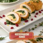 Delight in a festive and flavorful main course with these Cranberry & Spinach Stuffed Chicken Breasts with Brie. Tender chicken breasts are filled with a savory mix of fresh spinach, sweet dried cranberries, and creamy Brie cheese, then seared to golden perfection and baked to juicy finish. This easy yet elegant dish is perfect for holiday dinners or a special weeknight meal, delivering a beautiful balance of flavors and textures that everyone will love.