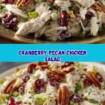 Cranberry Pecan Chicken Salad is a delicious and easy-to-make no-cook dish that combines tender cooked chicken with sweet dried cranberries, crunchy pecans, and a creamy tangy dressing. Perfect as a light lunch or a refreshing summer salad, this recipe offers a delightful balance of flavors and textures with wholesome ingredients, all ready in just 15 minutes.