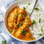 This Chicken Korma recipe is a creamy and flavorful Indian-inspired dish featuring tender chicken pieces cooked in a rich sauce made from yogurt, coconut cream, and aromatic spices. Perfectly spiced with garam masala, cumin, coriander, and a touch of chili, the korma is balanced with almond flour and a splash of heavy cream for extra richness. Ready in just 30 minutes, this comforting dish is ideal for a weeknight dinner served over white rice and garnished with fresh cilantro.