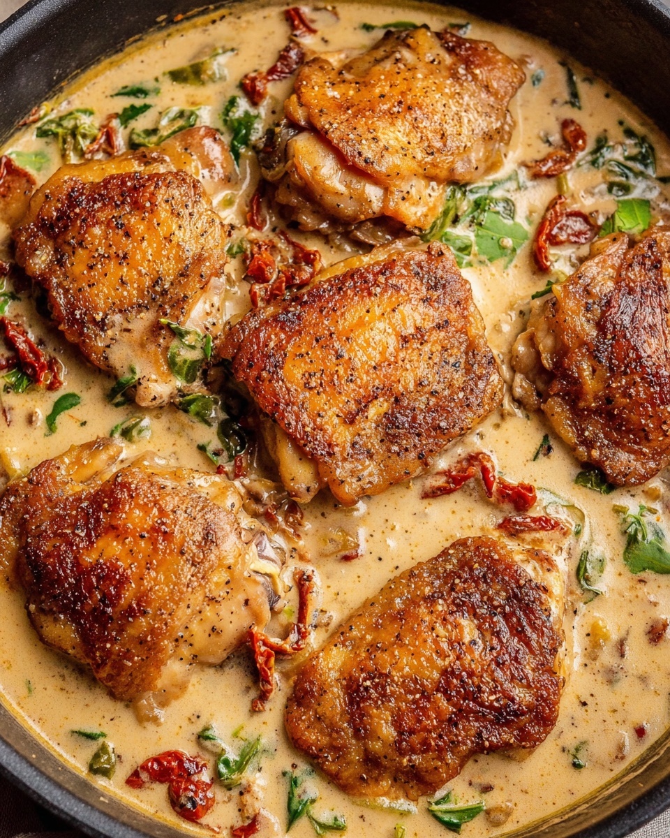 How to Make Creamy Chicken Thighs with Sun-Dried Tomatoes and Basil Recipe