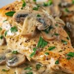 For a more elegant presentation, slice the chicken breasts and fan them out over a bed of creamy risotto or buttery polenta. Drizzle the mushroom sauce artfully over the top and garnish with a sprig of thyme or parsley for a restaurant-worthy appearance that’s sure to impress.