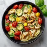 A delightful and creamy Chicken Zucchini Pasta combining tender bite-sized chicken, fresh zucchini slices, and al dente pasta in a rich Parmesan-heavy cream sauce, flavored with garlic and red pepper flakes for a subtle kick. This easy-to-make stovetop recipe makes a perfect weeknight dinner that’s both satisfying and full of fresh flavors.