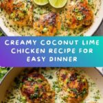 A flavorful and creamy coconut lime chicken recipe featuring tender seared chicken breasts baked in a rich coconut milk and lime sauce, garnished with fresh cilantro and green onions. This dish offers a perfect balance of creamy, tangy, and aromatic flavors, ideal for a quick and delicious dinner.