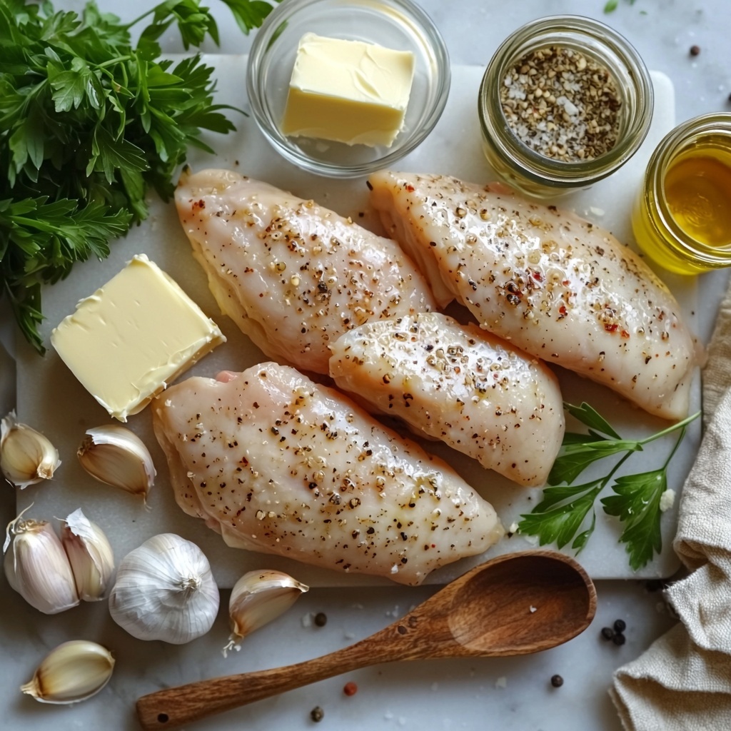Before diving into cooking, let’s take a look at the simple but essential ingredients that make this Creamy Garlic Parmesan Chicken Breast Recipe so special. Each one plays a key role, from adding depth and aroma to creating that silky, creamy texture you’ll swoon over.