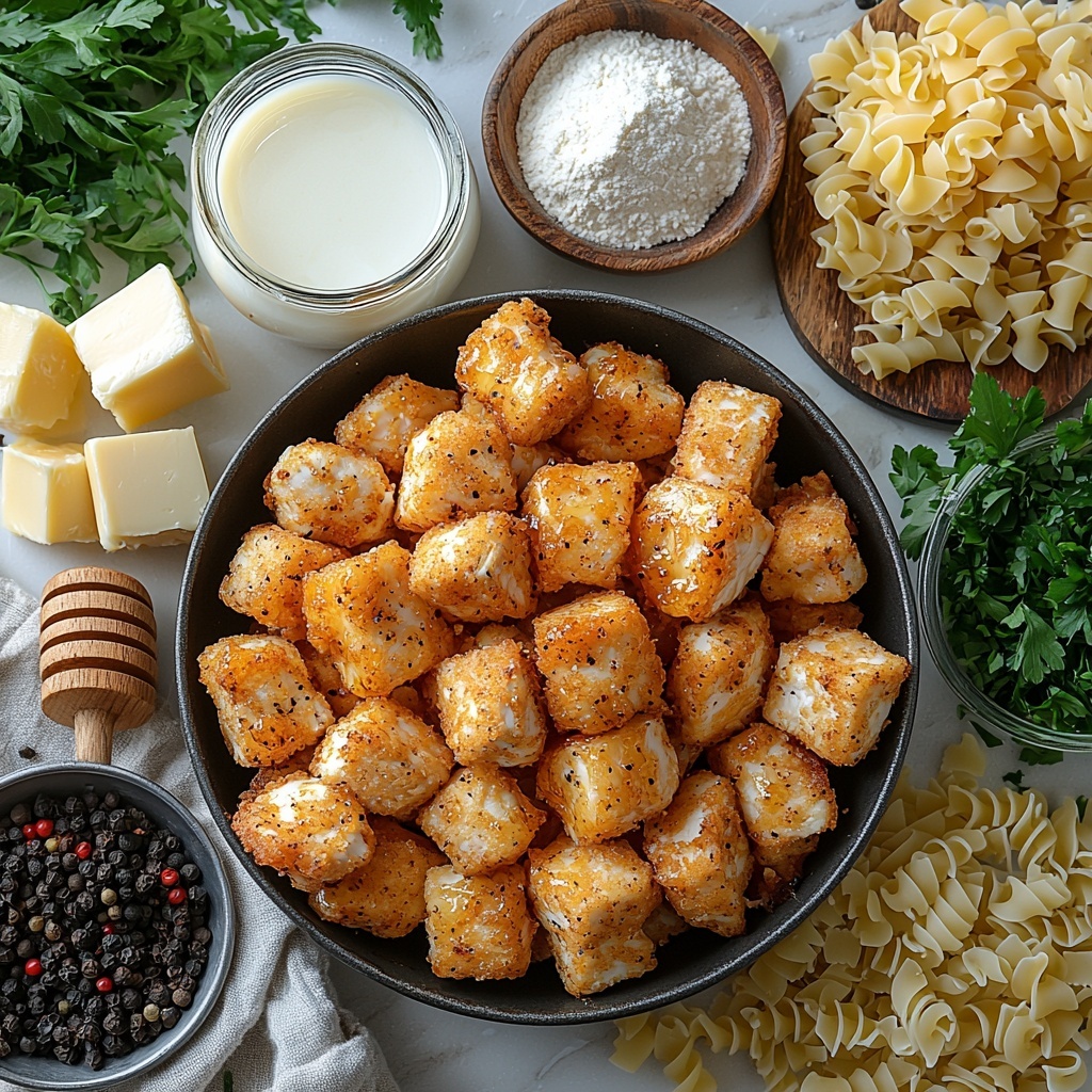 Start by cutting your boneless skinless chicken breasts into bite-sized chunks—this makes it easy to enjoy in every forkful. Soak those pieces in buttermilk for at least 30 minutes. This step is crucial as buttermilk tenderizes the chicken while imparting a gentle tang that complements the richness of the final dish.
