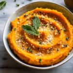 Dressing up your creamy mashed sweet potatoes can be wonderfully simple yet effective. A small knob of melting butter or a light drizzle of extra maple syrup on top adds that irresistible glossy shine and extra richness. For a bit of texture contrast, try a sprinkle of toasted pecans or chopped fresh herbs such as rosemary or thyme.
