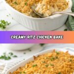This Creamy Ritz Cracker Chicken Casserole is a comforting, easy-to-make dish featuring tender shredded chicken baked in a rich and creamy sauce, topped with buttery crushed Ritz crackers for a perfectly golden and crunchy crust. Ideal for a family dinner or potluck, this casserole combines simple pantry ingredients for a deliciously satisfying meal.