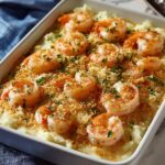 A creamy and flavorful Shrimp Casserole combining tender shrimp, cooked rice, a blend of cheeses, and aromatic vegetables, all baked to bubbly perfection with a golden breadcrumb topping. This comforting dish is perfect for a family dinner or special occasion.