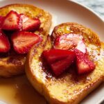 Consider pairing this luscious French toast with a simple arugula salad to cut through the richness, or perhaps a crispy bacon side for a salty contrast. Fresh orange juice or a light coffee will complement the meal perfectly, keeping it balanced and bright.