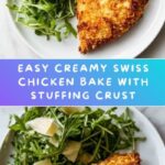This Creamy Swiss Chicken Bake is a comforting and elegant dish featuring tender chicken breasts topped with melted Swiss cheese, a rich cream of chicken soup and Chardonnay sauce, and a crispy herbed stuffing crust. Baked to golden perfection, it’s perfect for a family dinner or special occasion.