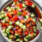 A crisp and refreshing Indian Kachumber Salad featuring diced cucumbers, tomatoes, onions, and optional green chilies, tossed with fresh lemon juice and spices. Perfect as a side dish to complement any Indian meal, this salad is bursting with fresh flavors and a subtle tang.