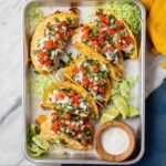 Nothing elevates these tacos like fresh, bright garnishes. Extra chopped cilantro scattered on top brings color and herbal freshness, while a dollop of pico de gallo introduces juicy, tangy bursts of flavor. Creamy guacamole adds another tasty layer that pairs beautifully with the crispy tacos and cilantro lime ranch sauce.