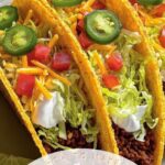 Sprinkle shredded lettuce, shredded cheddar cheese, and diced tomato over the beef-filled shells. Feel free to add jalapeños or cilantro if you’re feeling adventurous. The fresh toppings bring brightness, color, and that wonderful contrast between crisp and creamy.