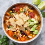 The real fun with this soup is in the garnishes. Crushed tortilla chips bring a delightful crunch, Greek yogurt or sour cream adds cool creaminess, sliced jalapenos give a spicy kick, and avocado slices offer buttery richness. Don’t forget a wedge of lime on the side to squeeze over for an extra pop of citrus brightness that makes each bite shine.