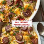 This Crockpot Pierogi Casserole with Kielbasa is a hearty, comforting dish combining tender potato and cheese pierogi with savory kielbasa sausage, creamy cheese sauce, and sautéed onions. Perfect for an easy, hands-off meal, it’s slow-cooked to perfection in a crockpot, making it ideal for busy days or cozy family dinners.