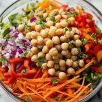 - Combine Salad Ingredients: In a large bowl, combine the chickpeas with the prepared carrots, bell pepper, cabbage, and green onions, ensuring an even mix of veggies and legumes.