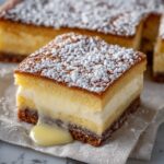 - Cool and Serve: Allow the cake to cool completely in the baking dish to set the custard layer fully. Once cooled, slice the cake into squares and dust each serving with powdered sugar for a beautiful presentation.