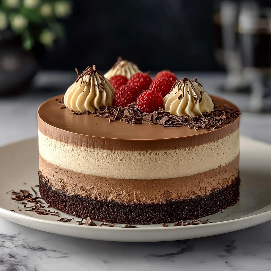 Indulge in this Decadent Chocolate Mousse Cake featuring moist chocolate cake layers paired with rich dark and white chocolate mousse fillings, topped with a silky milk chocolate ganache. Perfect for chocolate lovers seeking an elegant dessert that blends airy mousse with tender cake in a stunning presentation.