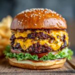 This Delicious Crack Burgers recipe features juicy grilled beef patties topped with cheddar cheese and a flavorful crack sauce made from mayonnaise, ranch dressing mix, crumbled bacon, and shredded cheddar. Served on toasted buns with optional fresh lettuce, tomato, and pickles, these burgers deliver an indulgent and satisfying meal perfect for any burger lover.