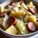 A hearty and flavorful slow cooker cabbage and sausage dish that’s easy to prepare and perfect for a comforting meal. Tender cabbage slowly cooked with smoked sausage, onions, garlic, and carrots, seasoned with paprika, black pepper, and a hint of apple cider vinegar for a tangy finish.
