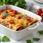 This Deliciously Cheesy Enchiladas Bake is a comforting and flavorful Mexican-inspired casserole featuring layers of soft tortillas, savory chicken or ground beef filling, spicy enchilada sauce, and a melty cheese blend. Perfect for a family dinner, it combines sautéed onions, garlic, green chilies, and optional beans or corn for added texture and depth, all baked to bubbly, golden perfection and garnished with fresh herbs.