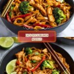 Drunken Noodles (Pad Kee Mao) is a vibrant and spicy Thai stir-fry dish featuring wide rice noodles tossed with tender chicken, crunchy vegetables, and aromatic Thai basil in a flavorful, savory sauce. This quick and satisfying recipe brings restaurant-quality street food to your home kitchen.