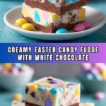 - Top and Decorate: Press the remaining ½ cup of Easter candies into the top of the fudge, and sprinkle pastel sprinkles on top if desired for an extra festive look.