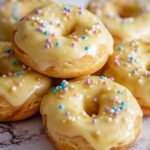 - Glaze and decorate: While the cookies cool, prepare the glaze by mixing the icing sugar with lemon juice until smooth. Dip each cooled cookie into the lemon glaze, allowing the excess to drip off. Immediately sprinkle with colourful sprinkles if desired for a festive touch.