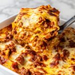 This Easy Baked Ravioli recipe features layers of cheese ravioli, a savory ground beef and marinara sauce mixture, and a blend of mozzarella and parmesan cheeses, baked to bubbly perfection. A comforting and hearty dish, it’s simple to prepare and perfect for a family dinner.