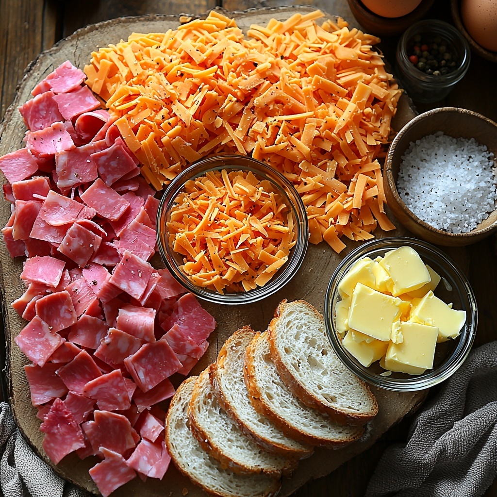 Gathering the right ingredients is half the joy of cooking, and this recipe is wonderfully straightforward. Each component plays a crucial role: the bread forms a golden, crisp cup, the eggs provide protein and softness, the ham adds savory depth, and the cheese brings a creamy, melted finish. Don’t overlook the seasoning and butter — they elevate every bite with rich flavor and texture.
