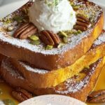 This Fall Pumpkin French Toast recipe combines the creamy richness of pumpkin puree with warm autumn spices like cinnamon, nutmeg, and ginger to create a cozy, flavorful breakfast. Thick slices of bread are soaked in a spiced pumpkin-egg mixture and cooked until golden brown, making a perfect dish to enjoy with maple syrup and optional toppings like whipped cream and chopped pecans.