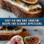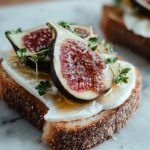 A delightful appetizer featuring crispy baguette slices topped with creamy Brie, fresh figs, a drizzle of honey, and optional balsamic glaze, garnished with fresh herbs for a perfect balance of sweet, savory, and earthy flavors.