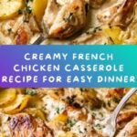 This French Chicken Casserole is a creamy, comforting dish featuring tender chicken breasts simmered in a savory sauce made of heavy cream, chicken broth, herbs, and Parmesan cheese, finished in the oven for perfect melding of flavors. It combines sautéed vegetables and a rich sauce for a classic, easy-to-make meal perfect for family dinners.