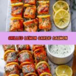These Garlic & Lemon Salmon Kabobs are a flavorful and healthy Mediterranean-inspired dish featuring tender salmon cubes marinated in a zesty lemon and garlic mixture, paired with fresh vegetables, and grilled to perfection for a slightly charred finish.