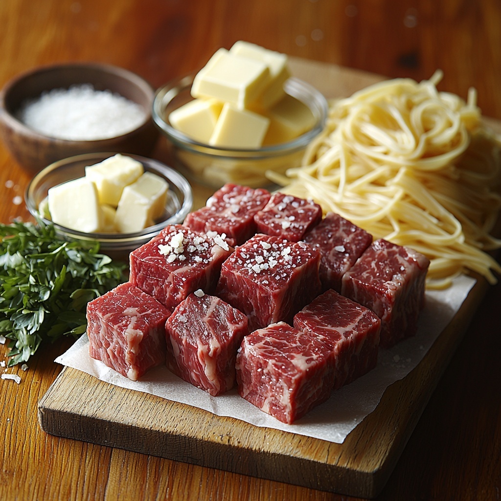 - Prepare the steak: Cut the steak into bite-sized cubes and pat them dry with paper towels. Season evenly with salt and black pepper to enhance flavor.