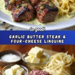Garlic Butter Steak with Cheesy Four-Cheese Linguine Recipe
